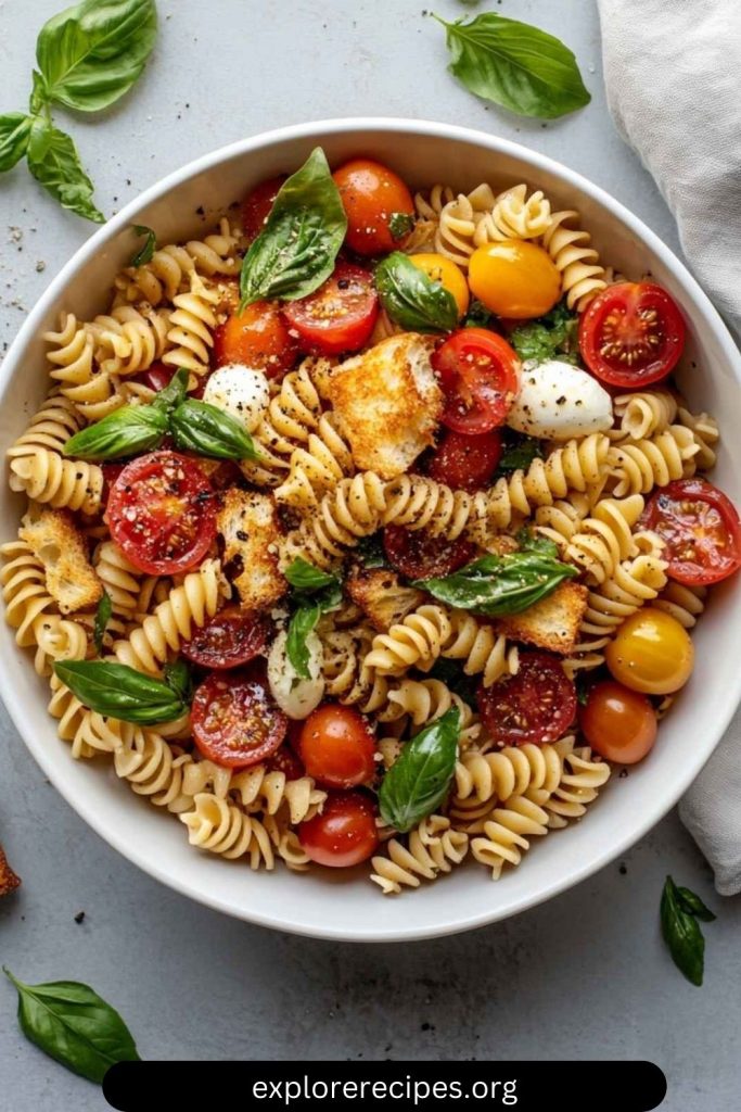 Bruschetta Pasta Salad is more than just a meal—it’s a celebration of fresh, simple ingredients that bring a taste of summer to your table any time of year. Whether you’re serving it at a family gathering, bringing it to a potluck, or simply craving something light yet satisfying, this dish will never disappoint.