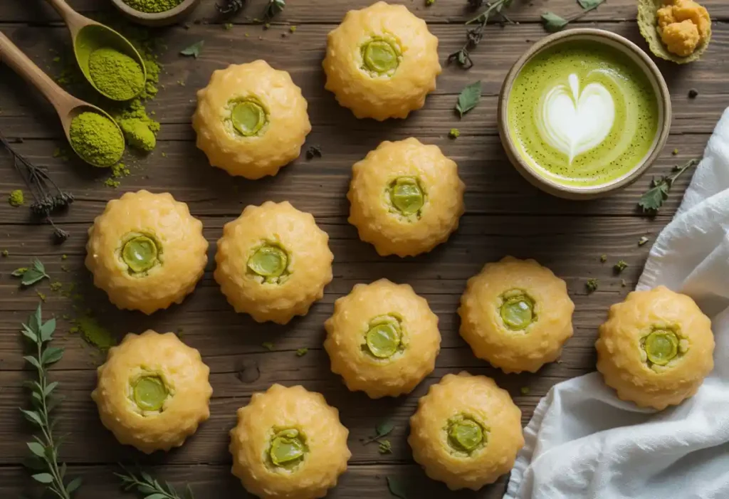 Green Tea Mochi Cookies are cookies filled or layered with a soft, stretchy mochi center, infused with matcha (green tea) powder. The outer layer is usually a classic sugar cookie or butter cookie dough, lightly crisped in the oven. The inside surprises you with a gooey mochi that offers a tender bite and a subtle, earthy green tea flavor.